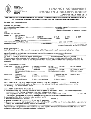 Room Rental Agreement Tenancy Agreement For Rooms In Shared House